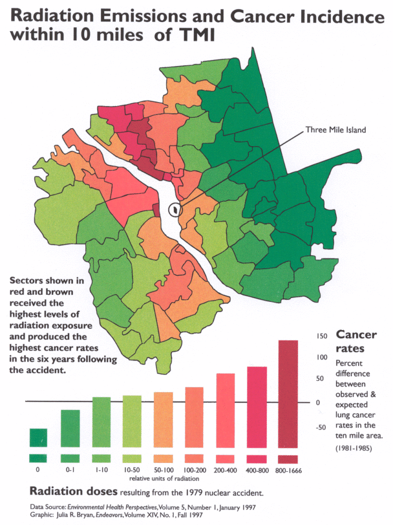 Three Mile Island. On March 28, 1979, a partial meltdown occurred at a nuclear plant on the Susquehanna River in Pennsylvania. Meltdowns happen when the cooling systems experience failure and cause the uranium fuel to “melt” and possibly eat through its containment structures. When this happens, radioactive materials are released and explosions are possible.